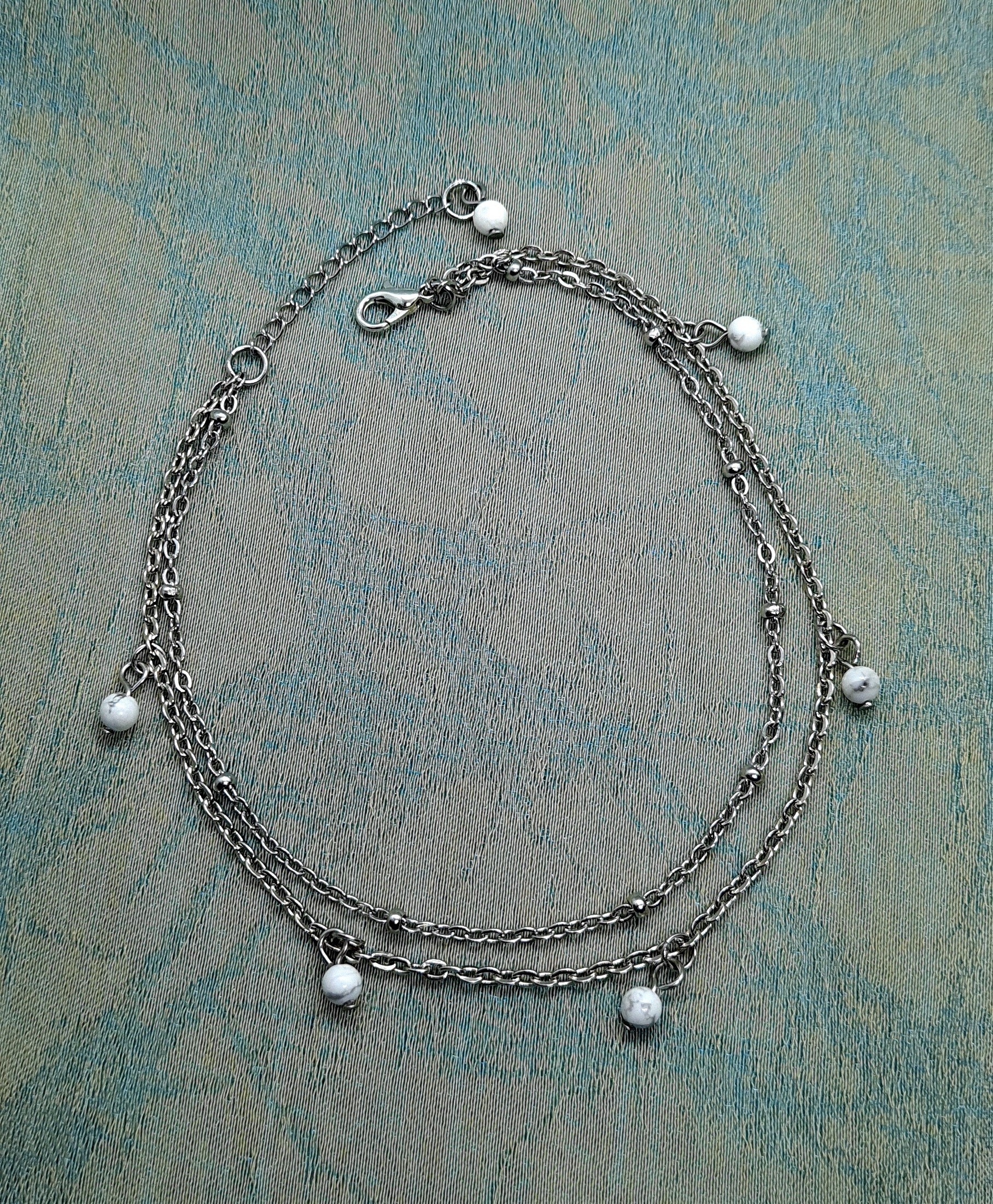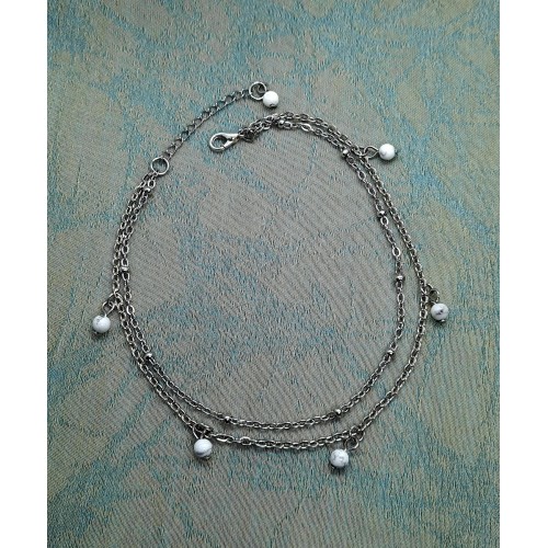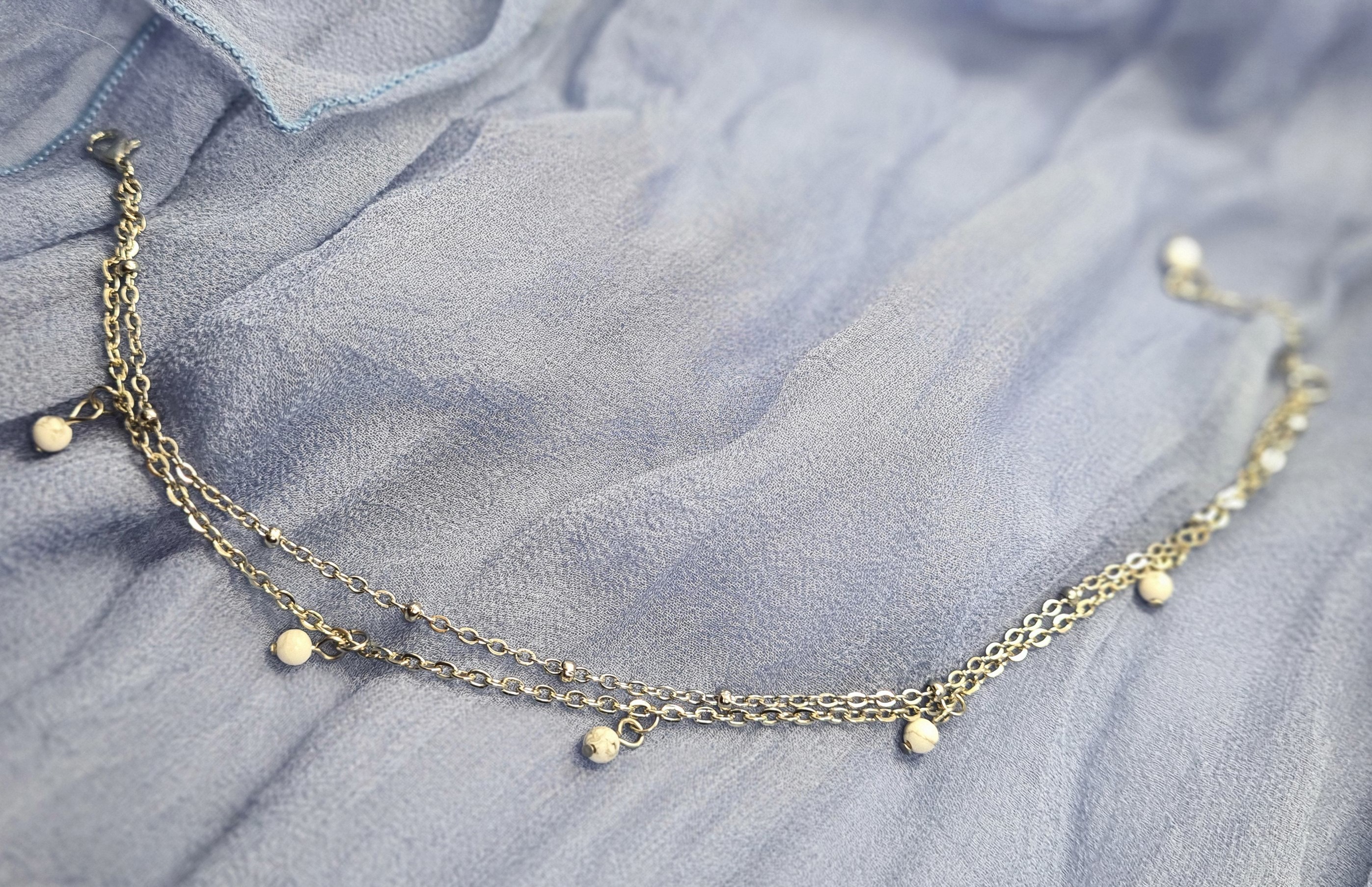 Bracelet double chaînes cheville en acier inoxydable avec pierre naturelle.