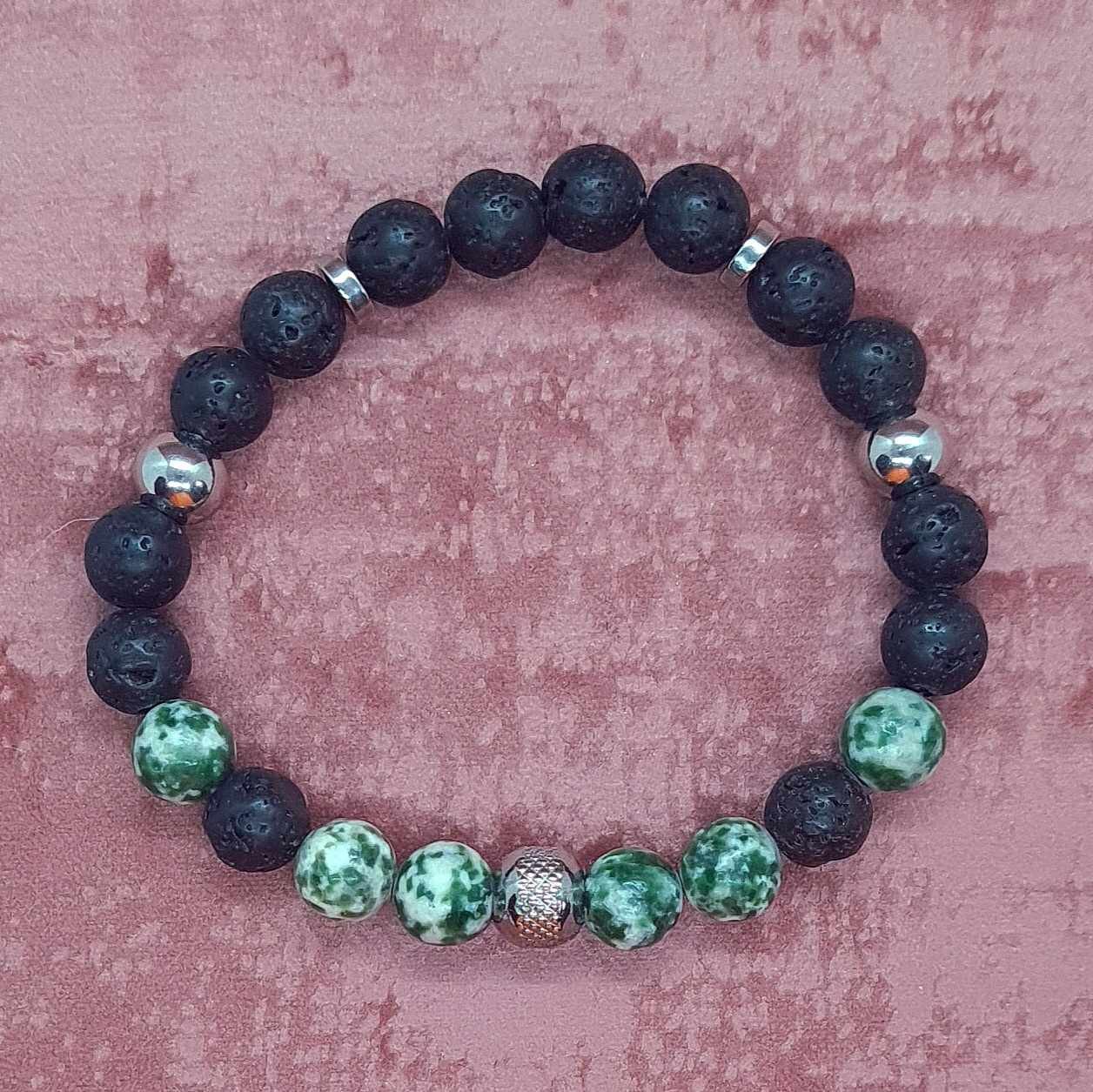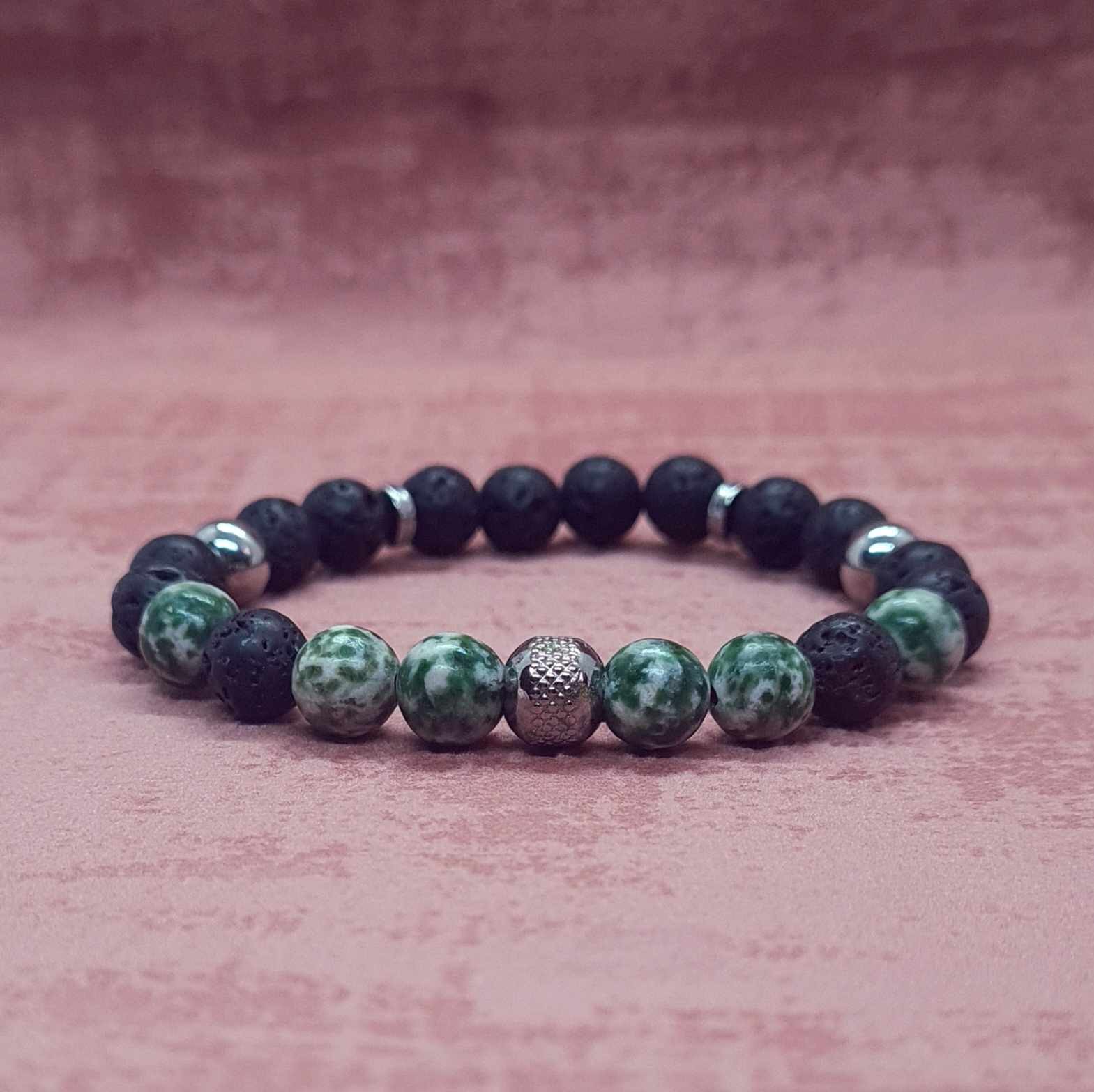 Bracelet en pierres naturelles de Lave et Agate arbre avec fil élastique 7 brins doublé.