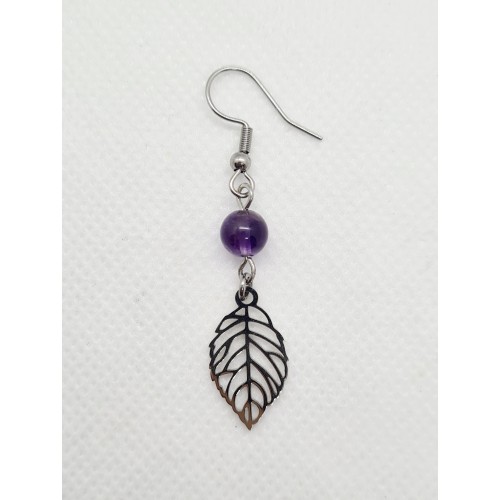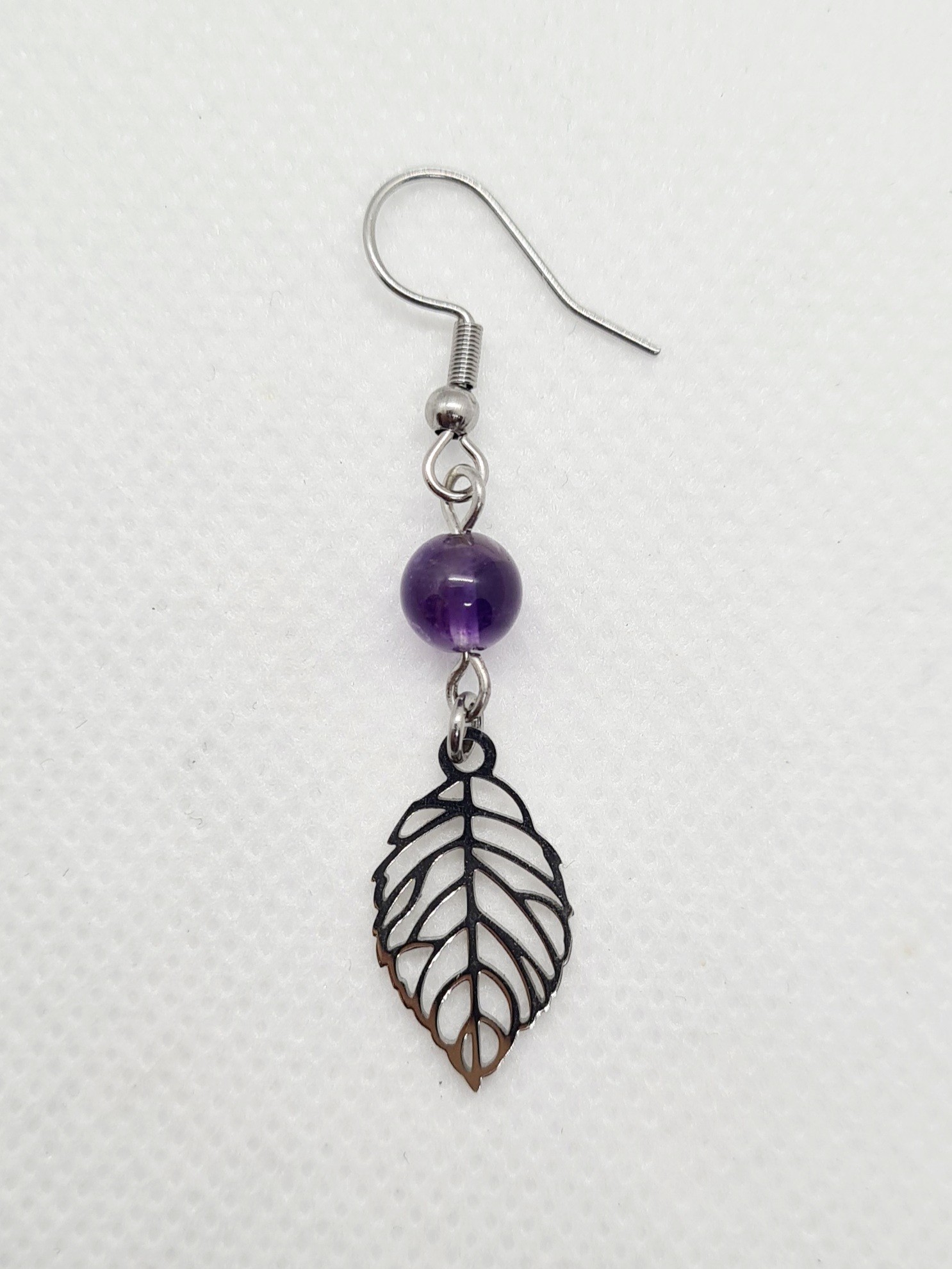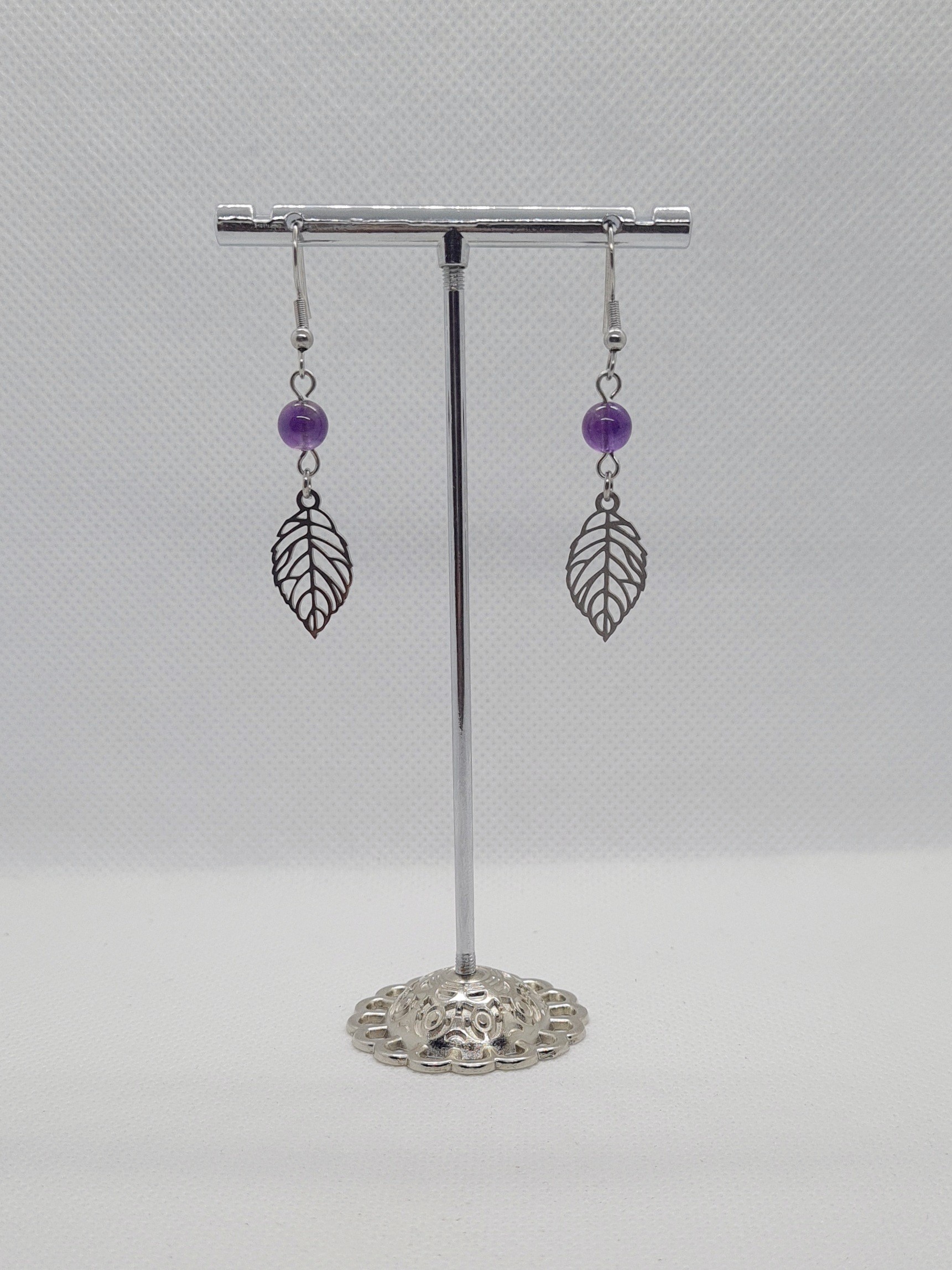 Boucles d'oreilles en acier inoxydable et pierres naturelles (sur la photo Améthyste de 6 mm)