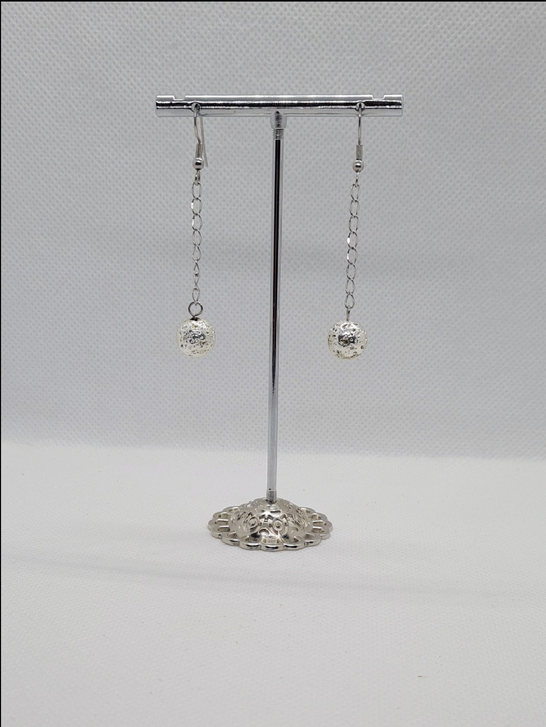 Boucles d'oreilles en acier inoxydable et Pierre naturelles Hématite argenté style pierre de lave 11 mm.