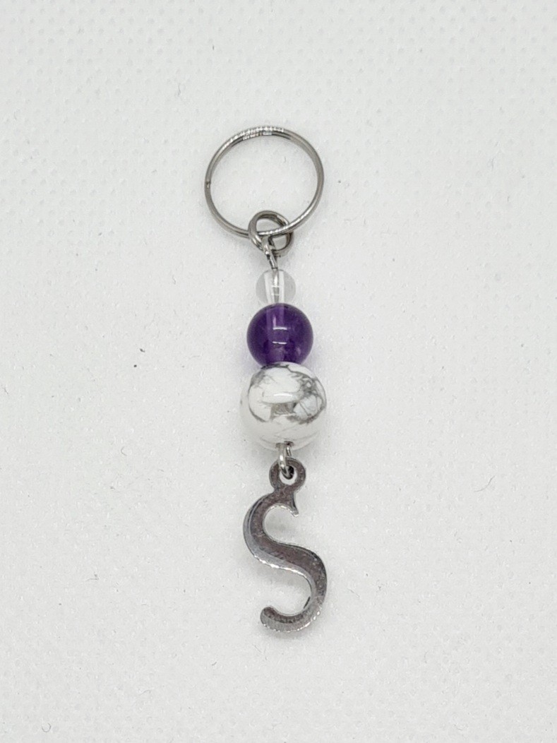 Pierre naturelle de Howlite 8 mm, Améthyste 6 mm et Christal de roche 4 mm.