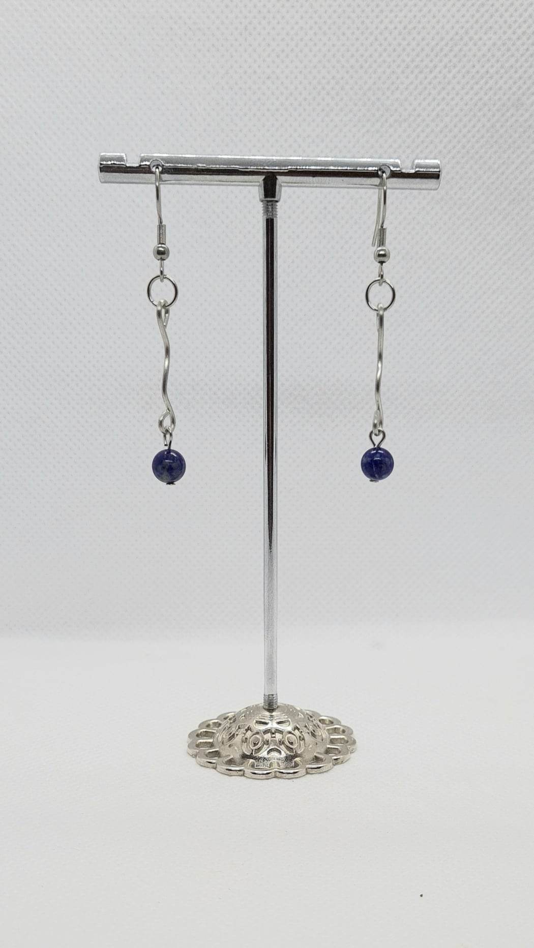 Boucles d'oreille Ondulée en acier inoxydable avec Fil en acier inoxydable travaillé à la main.
