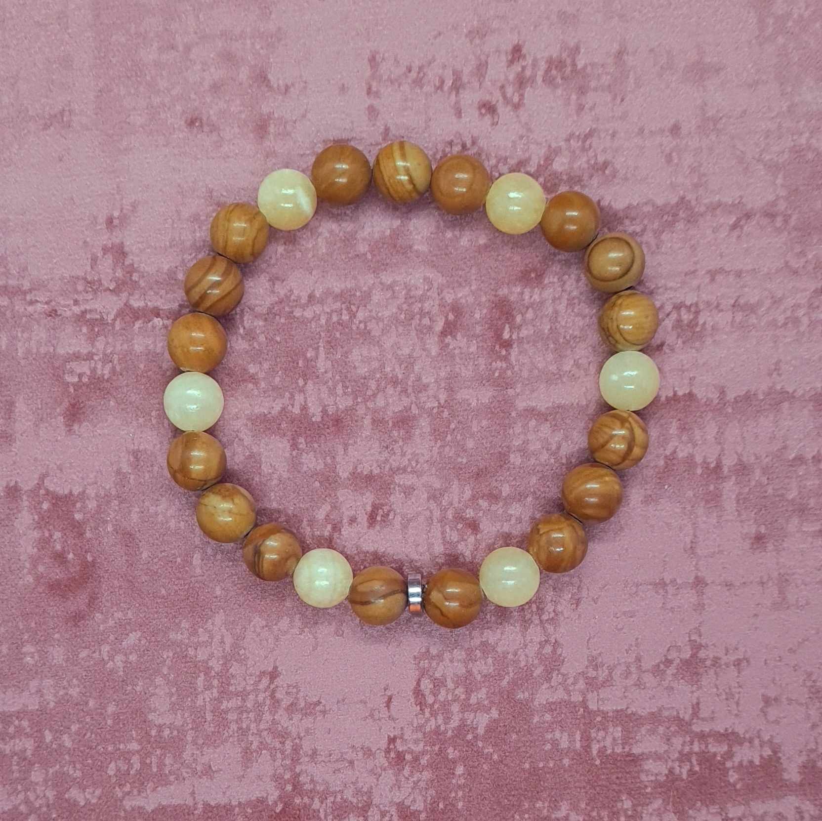 Pierres naturelles de 8 mm - Calcite et Jaspe jaune avec fil élastique 7 brins doublé.
