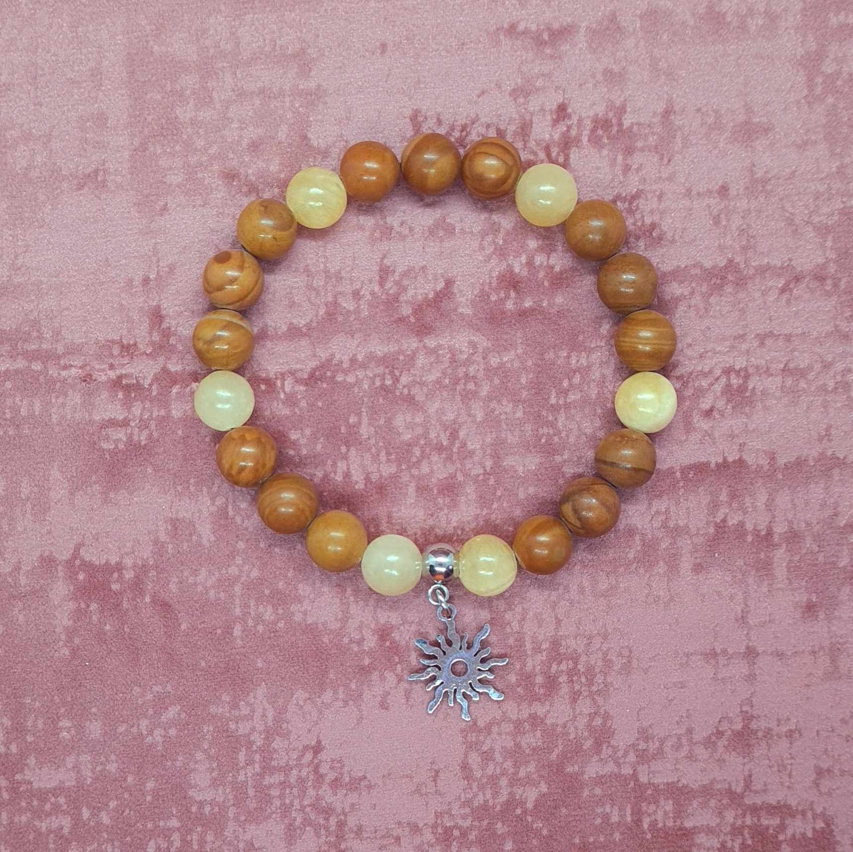 Pierres naturelles de 8 mm - Calcite et Jaspe jaune avec fil élastique 7 brins doublé.