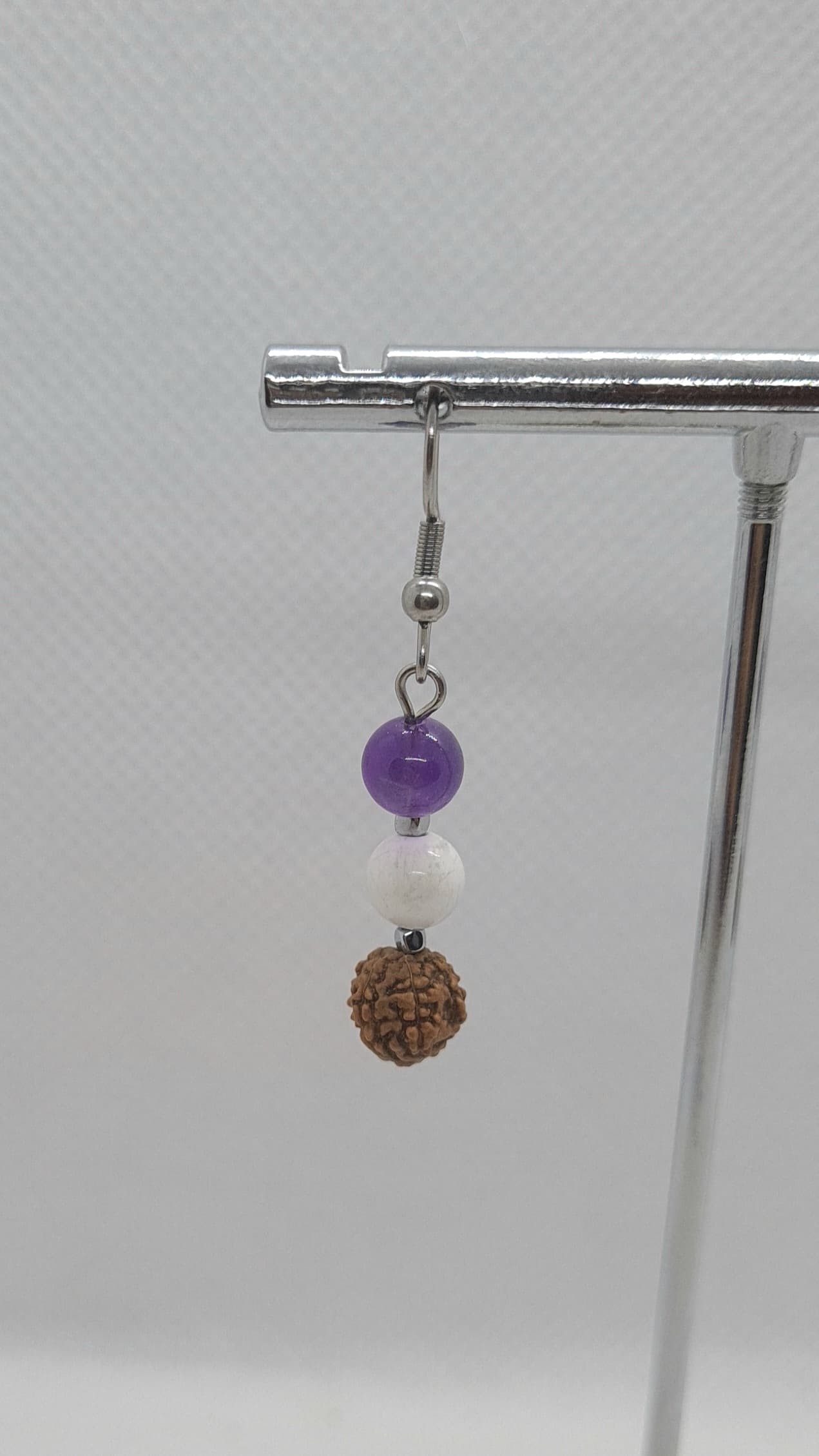 Boucles d'oreilles en acier inoxydable et Pierres naturelles 6 mm et 2 mm