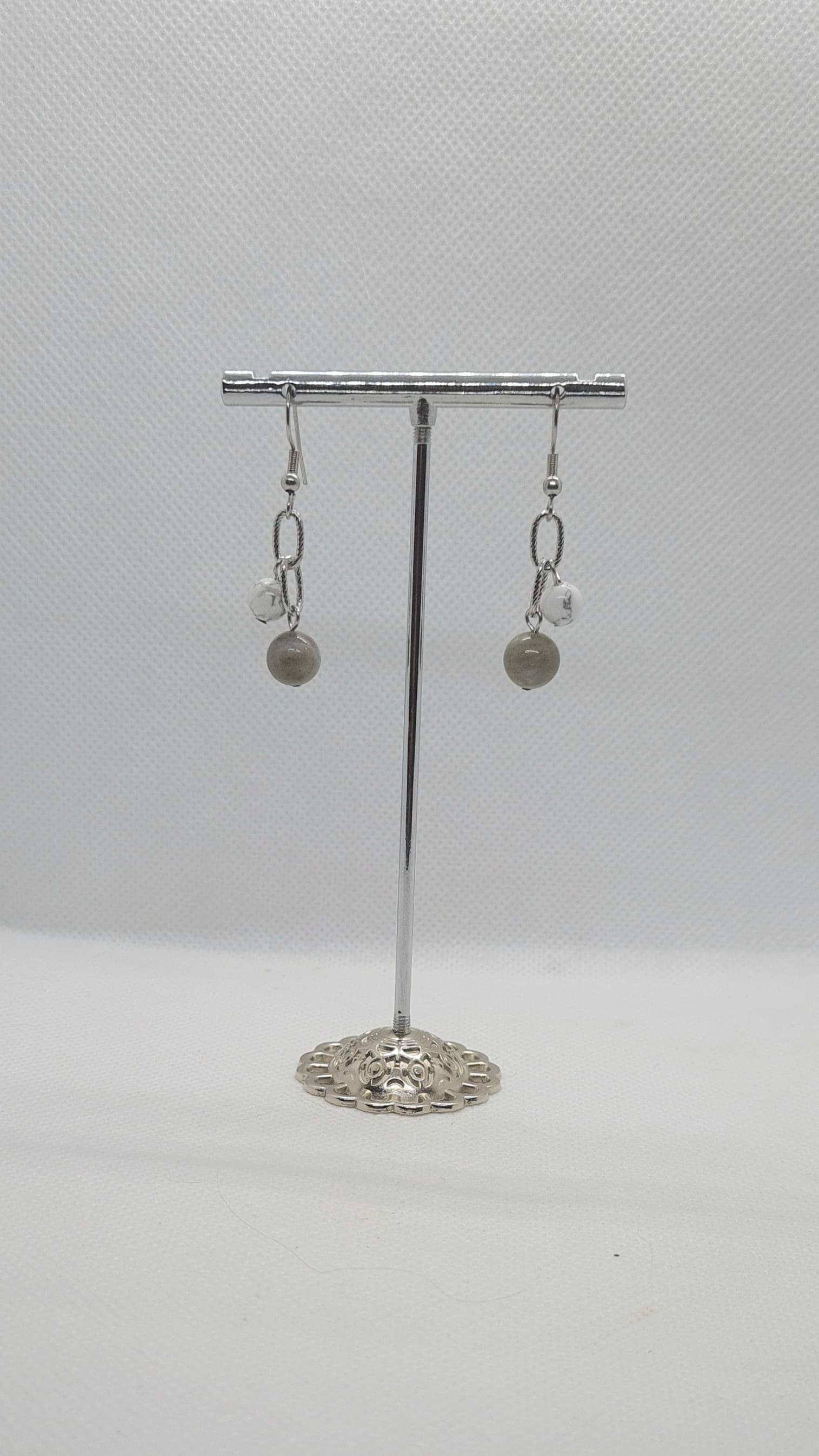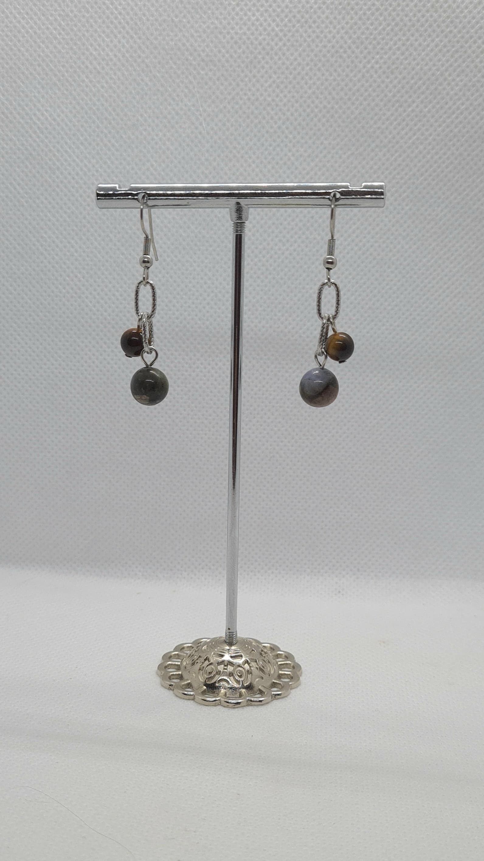 Boucles d'oreilles en acier inoxydable et Pierres naturelles de 6 mm et 8 mm