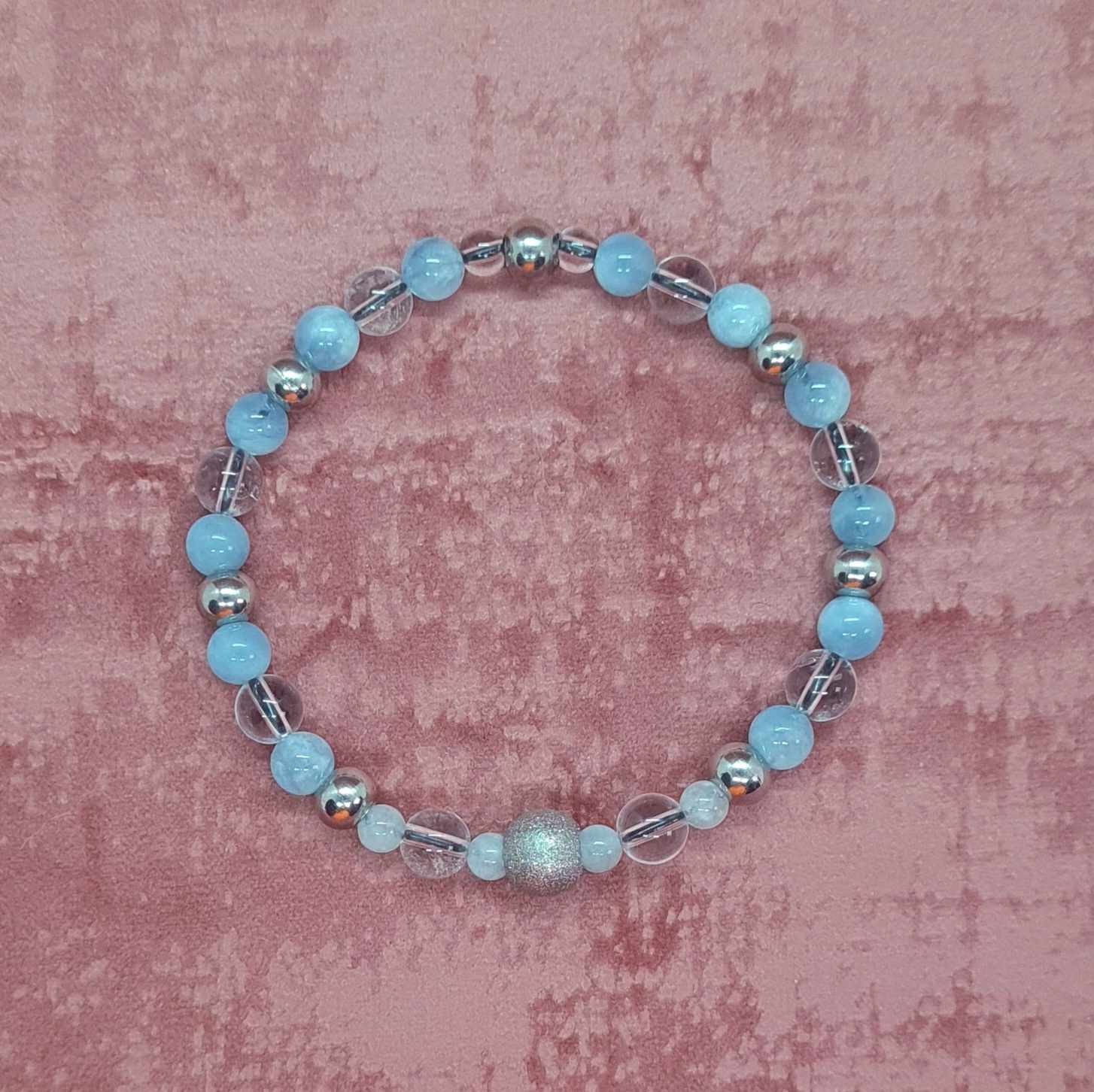 Pierres naturelles de 4 mm et 6 mm - Aigue marine et Cristal de roche - avec fil élastique 7 brins doublé.