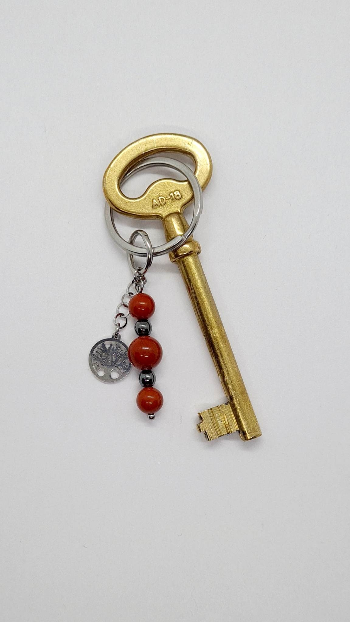 Porte-clés arbre de vie en acier inoxydable.