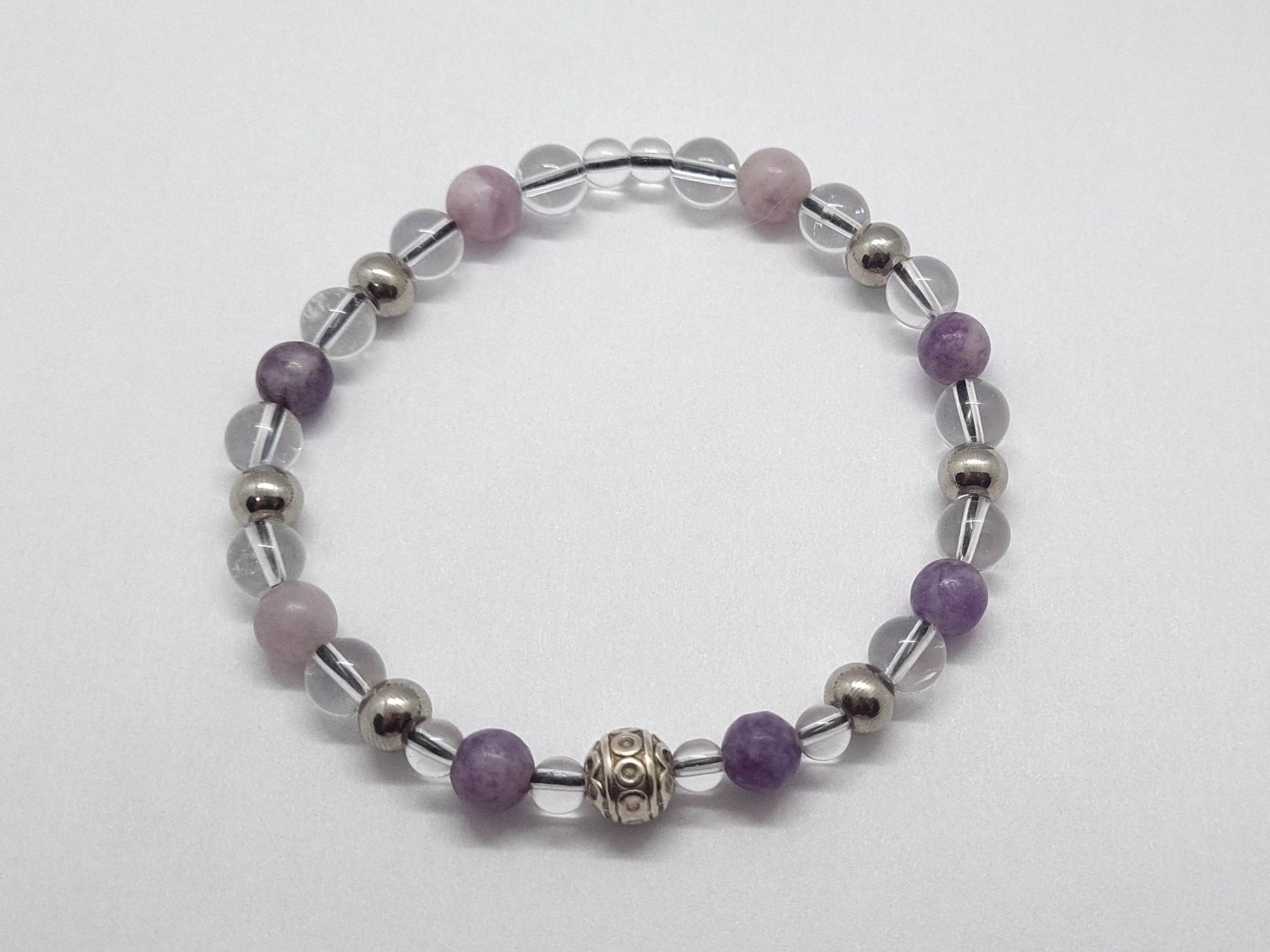 Bracelet Lépidolite et Cristal de roche avec fil élastique 7 brins doublé.