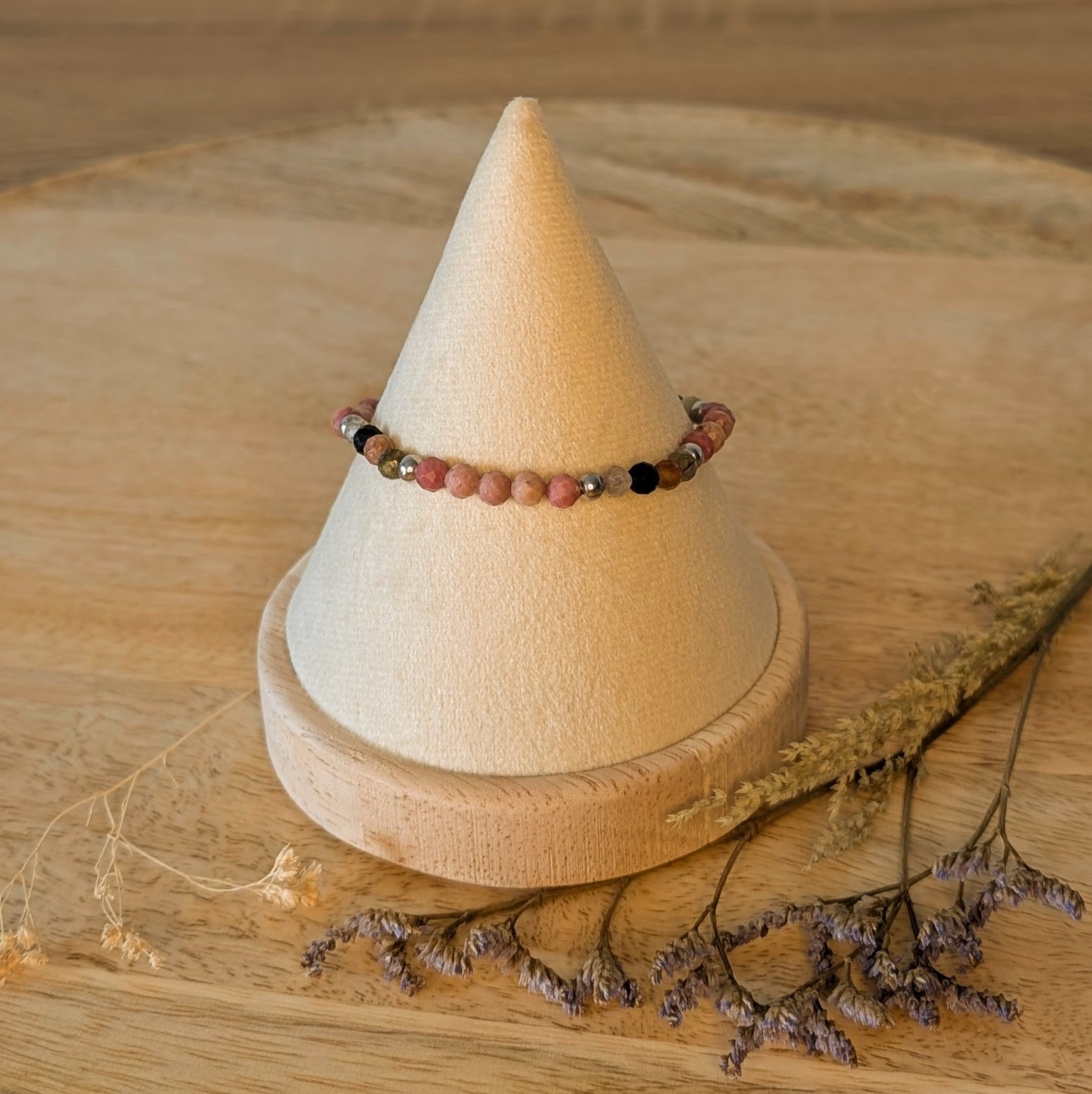 Bracelet en pierres naturelles de 4mm avec fil élastique 7 brins doublé.