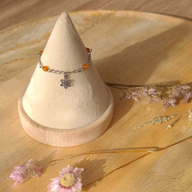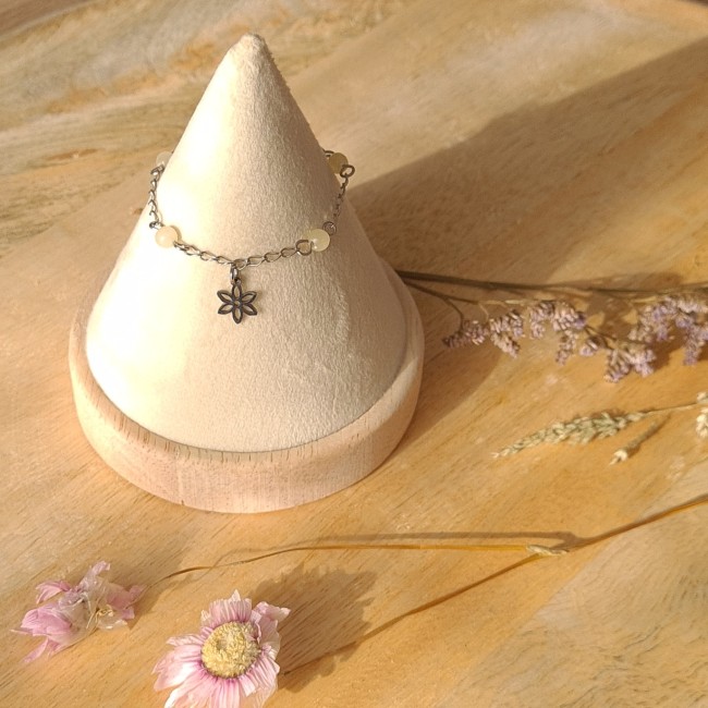 Bracelet fleur en acier inoxydable et pierres naturelles 4 mm.