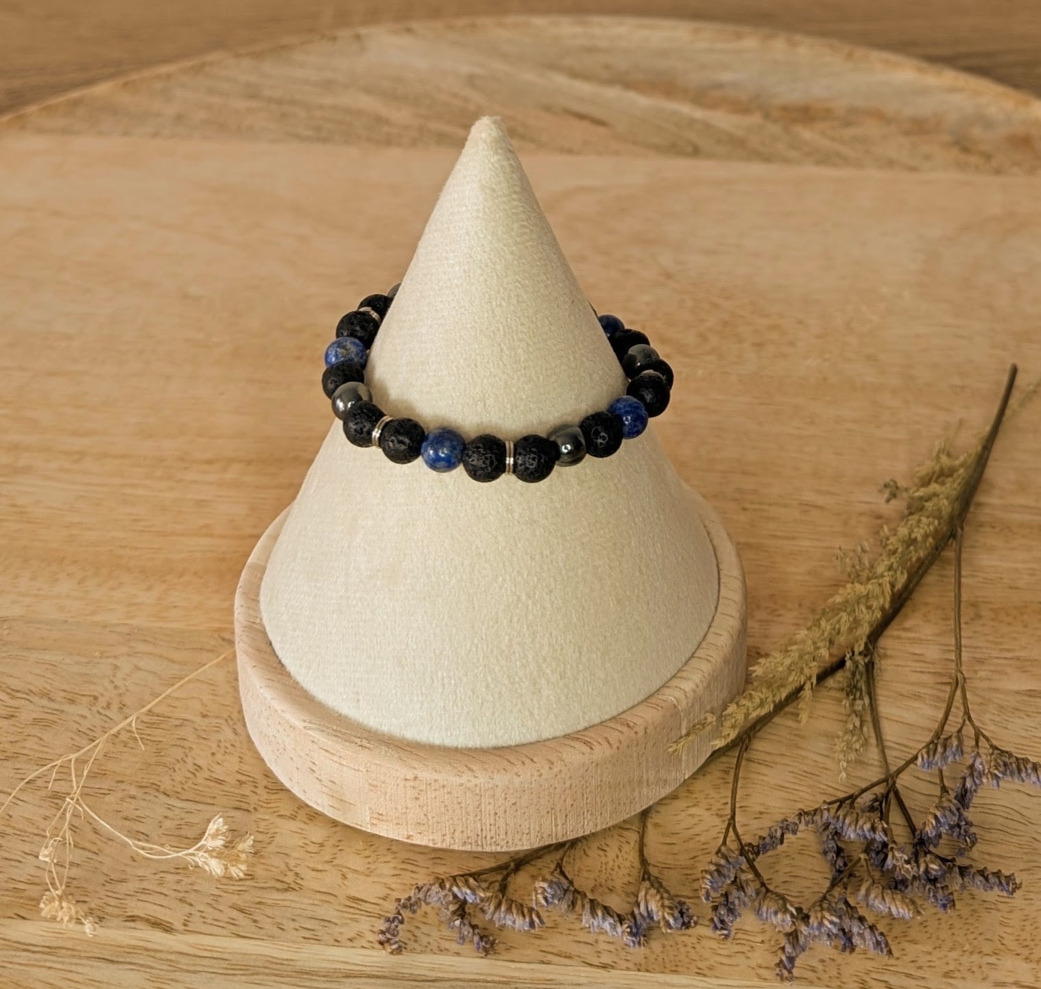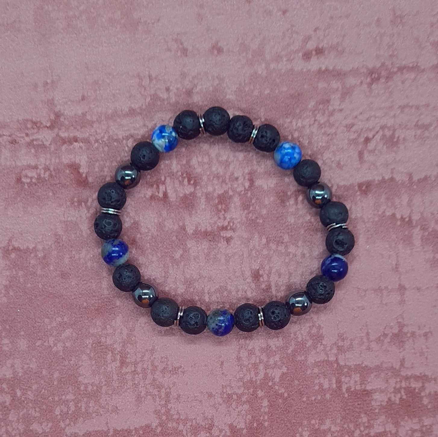 Bracelet en pierres naturelles de Lapis Lazuli, Hématite et Lave de 6 mm avec élastique 7 brins doublé.