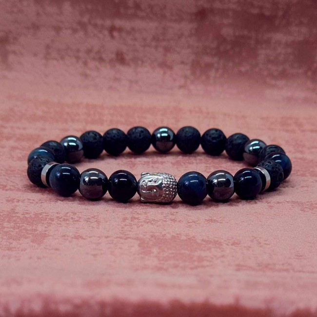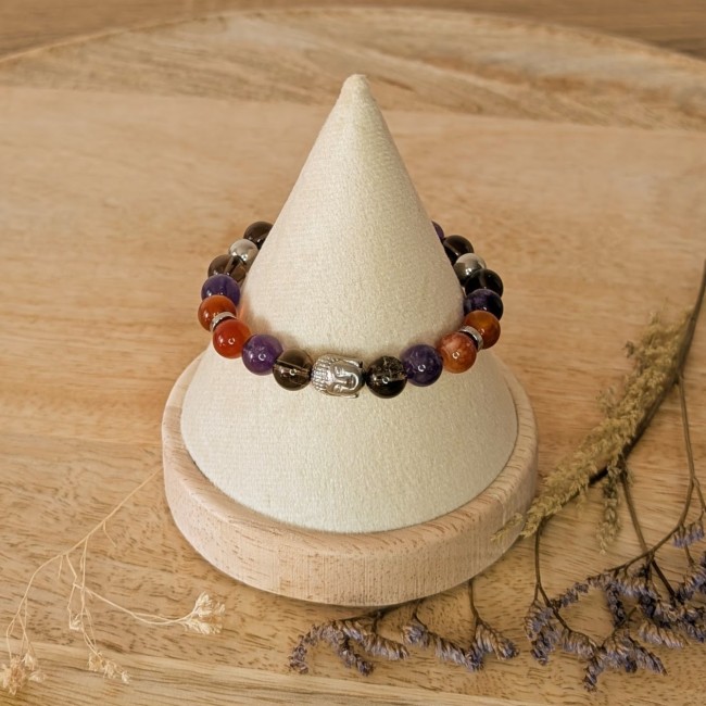 Bracelet en pierres naturelles de Jaspe rouge et unakite de 8 mm avec élastique 7 brins doublé.