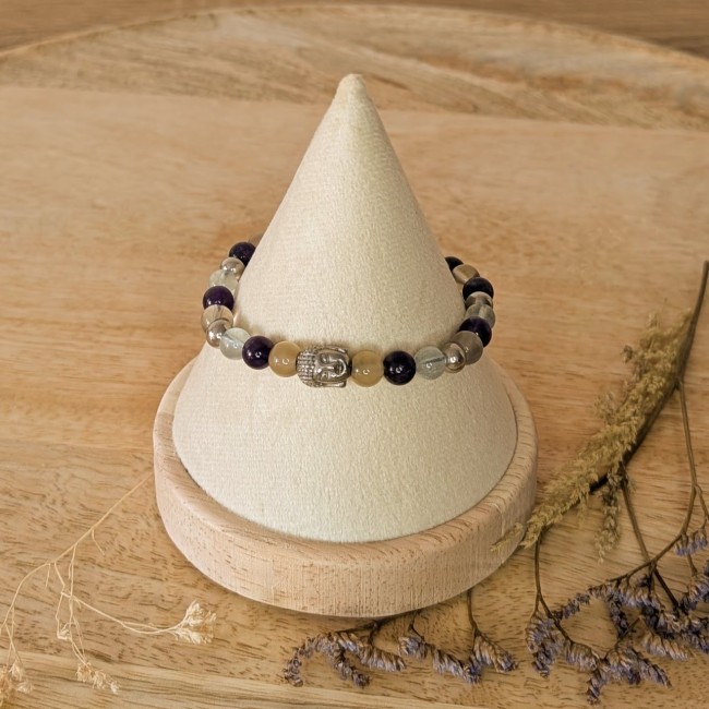Bracelet en pierres naturelles de Lave et Hématite de 8 mm avec élastique 7 brins doublé.