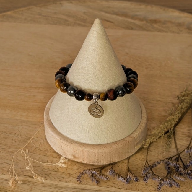 Bracelet en pierres naturelles de Bronzite, Aigue Botswana A+ et Quartz fumé de 8 mm avec élastique 7 brins doublé.