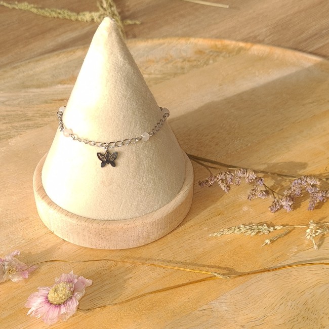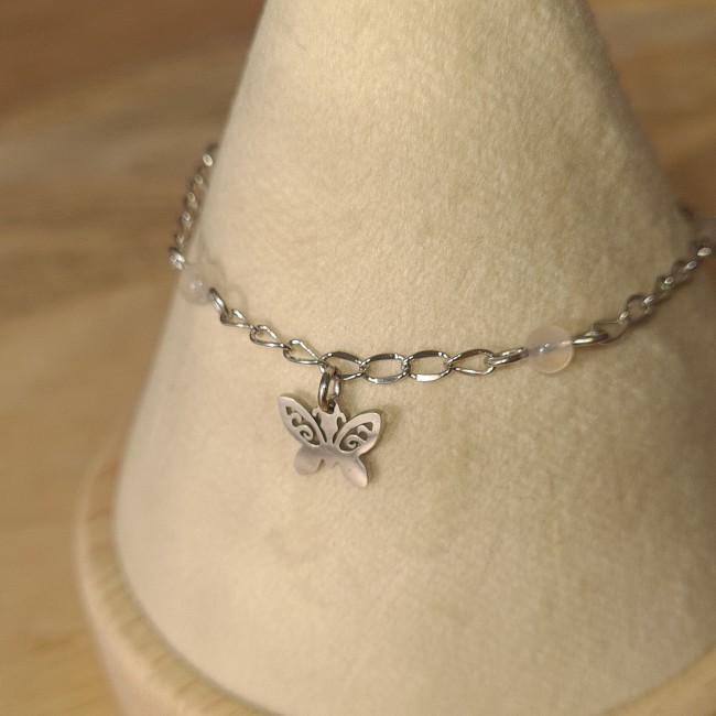 Bracelet fleur en acier inoxydable et pierres naturelles 4 mm.
