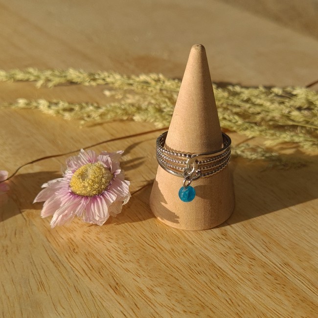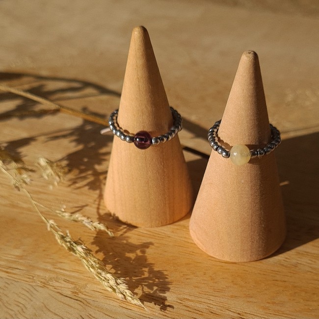 Bague élastique (7 brins) entourée de pierres naturelles d'Hématite et Aventurine.